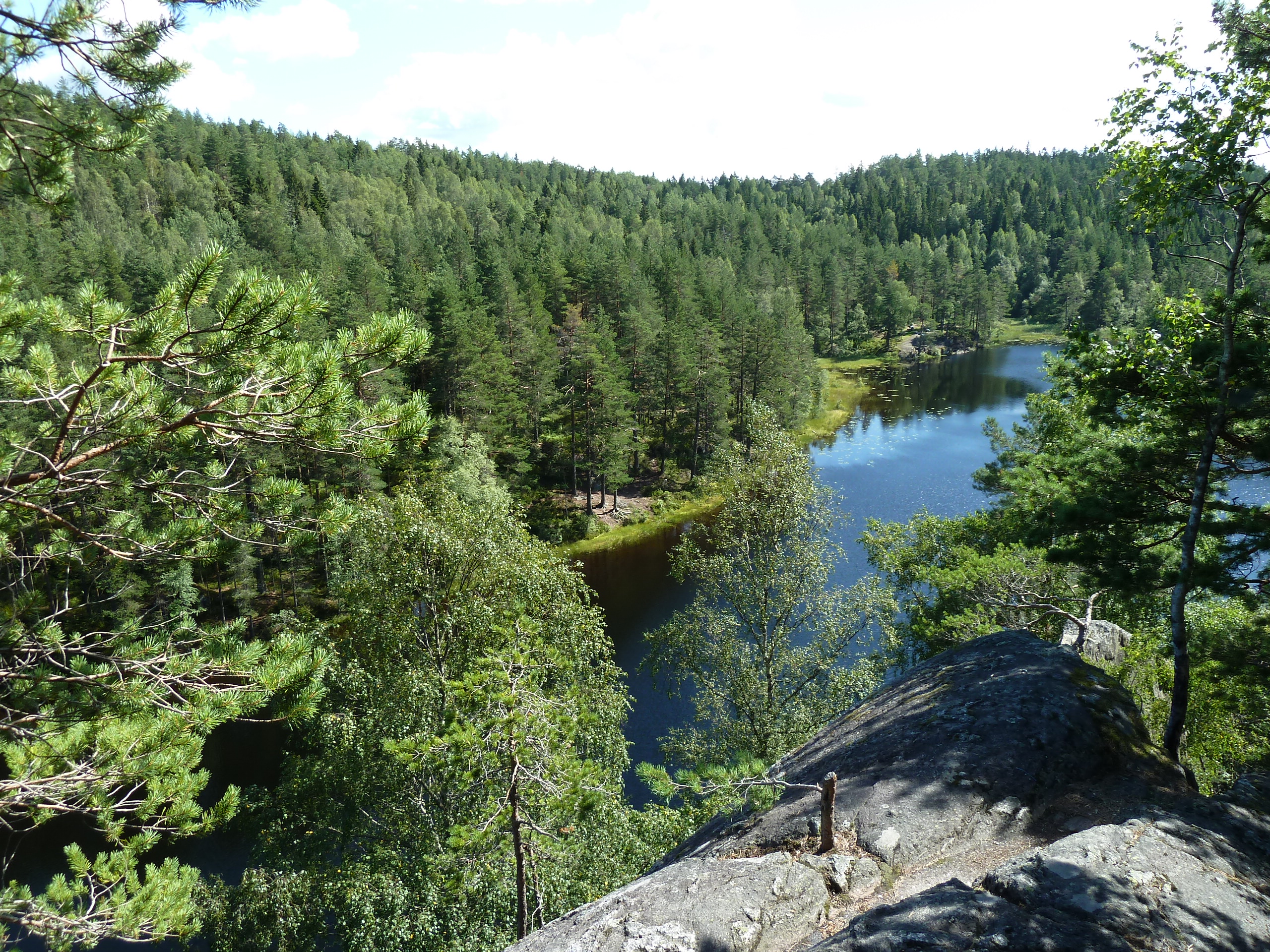 Hauktjern (Hawk Lake) seen from the cliff on the west side. The little clearing by the east waterside in the middle of the image, is where we had our camping ground in 1976, at an image on 'Images', 'Photo Album', 'Picture 39'. Saturday, August 8, 2015. www.davidhegg.info |