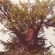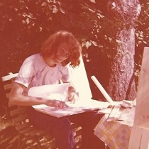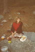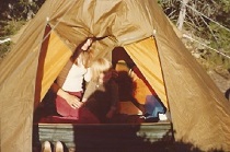 Here is my wife in 1976. She, our daughter, and I; are on a camping trip together in the middle of the summer. She sits outside the tent.